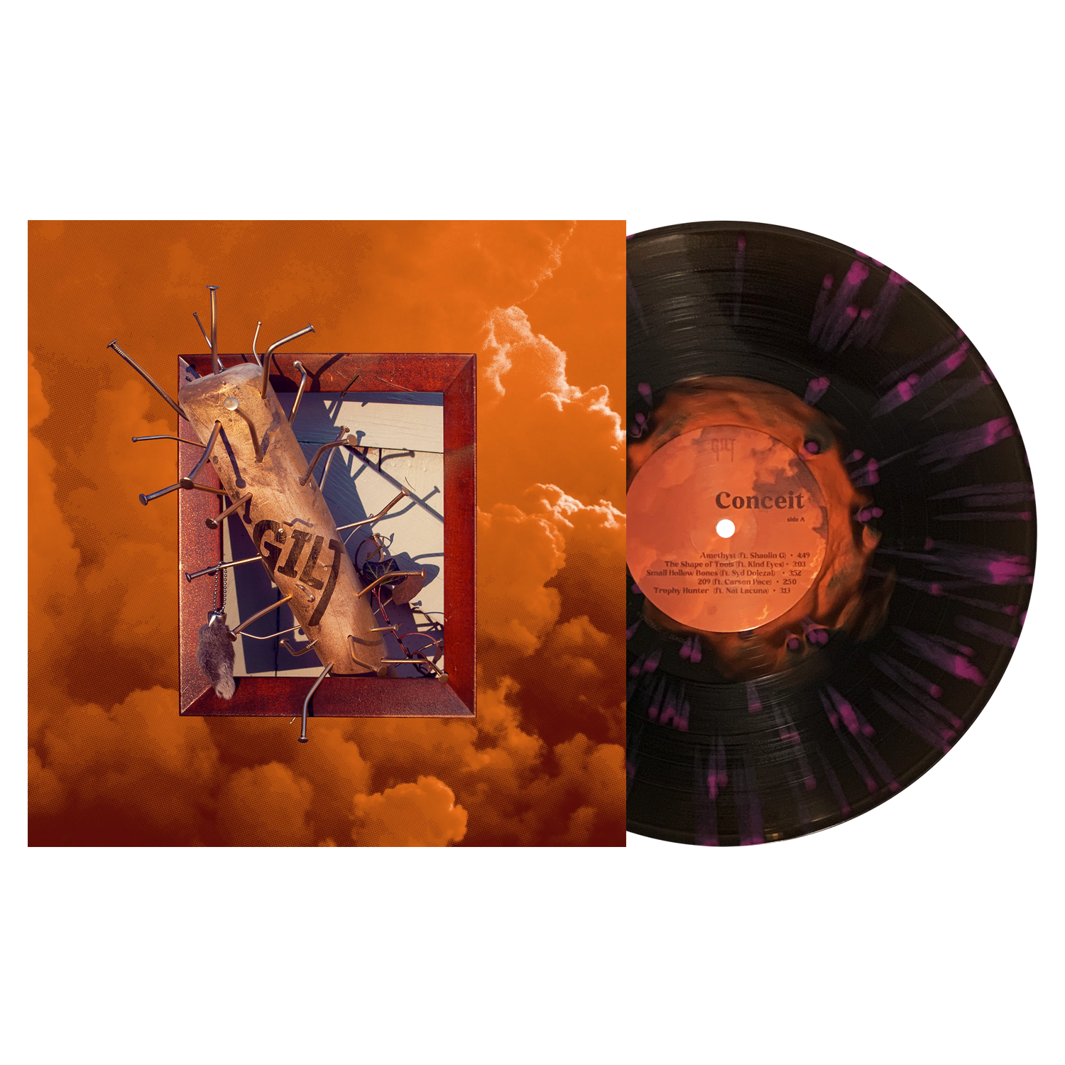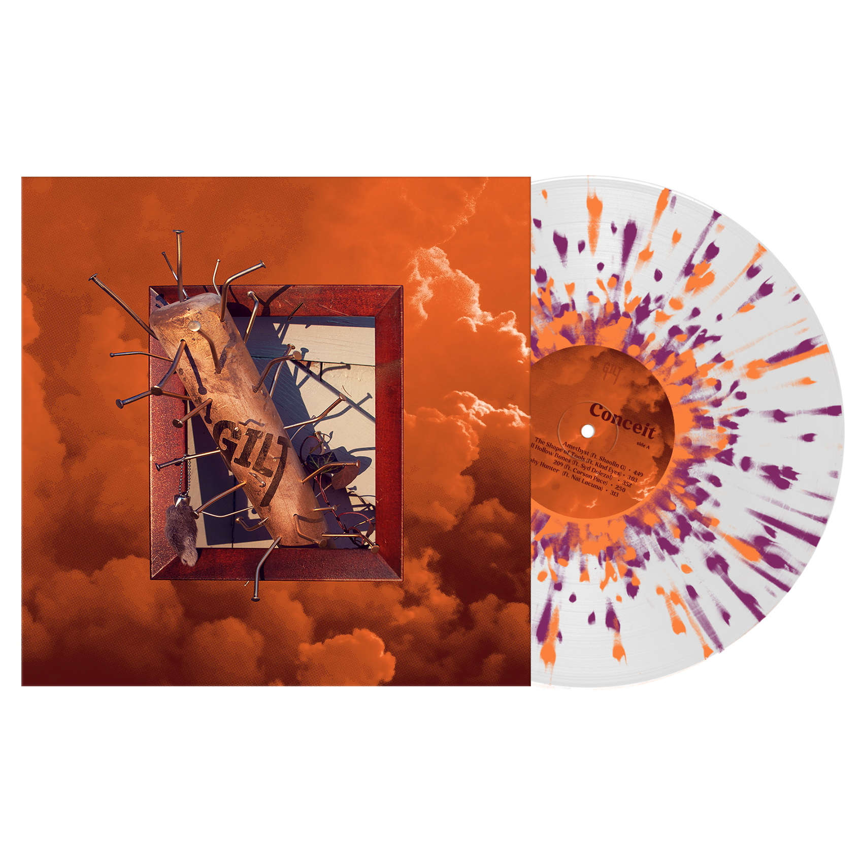 White w/ Heavy Orchid & Tangerine Splatter (#SmartpunkExclusive) / 100 Orchid & Tangerine Smash (Band Variant) / 200 Tangerine inside Black Ice w/ Orchid Splatter / 400 Tracklisting: Amethyst (feat Shaolin G) The Shape of Tools (feat. Kind Eyes) Small Hollow Bones (feat. Sydney Dolezal) 209 (feat. Carson Pace) Trophy Hunter (feat. Nat Lacuna) In Windows (Ignore What's Missing) Long Time Coming Through Windows (I Didn't Want You As A Mirror)